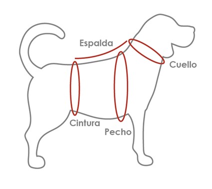 M: 61-79 cm pecho, 45-56 cm circunferencia cuello