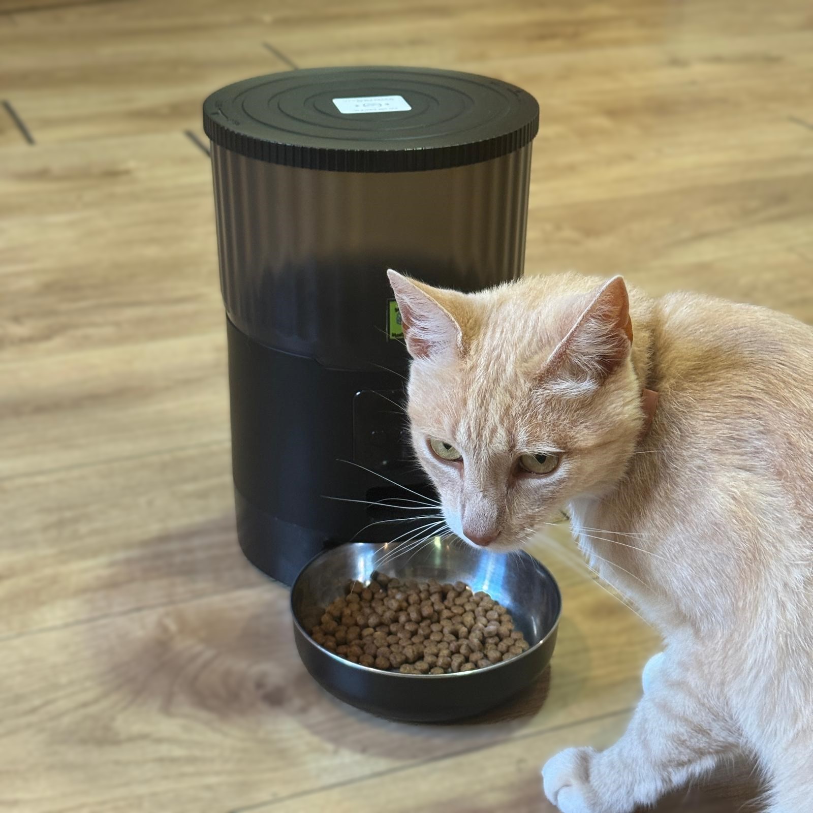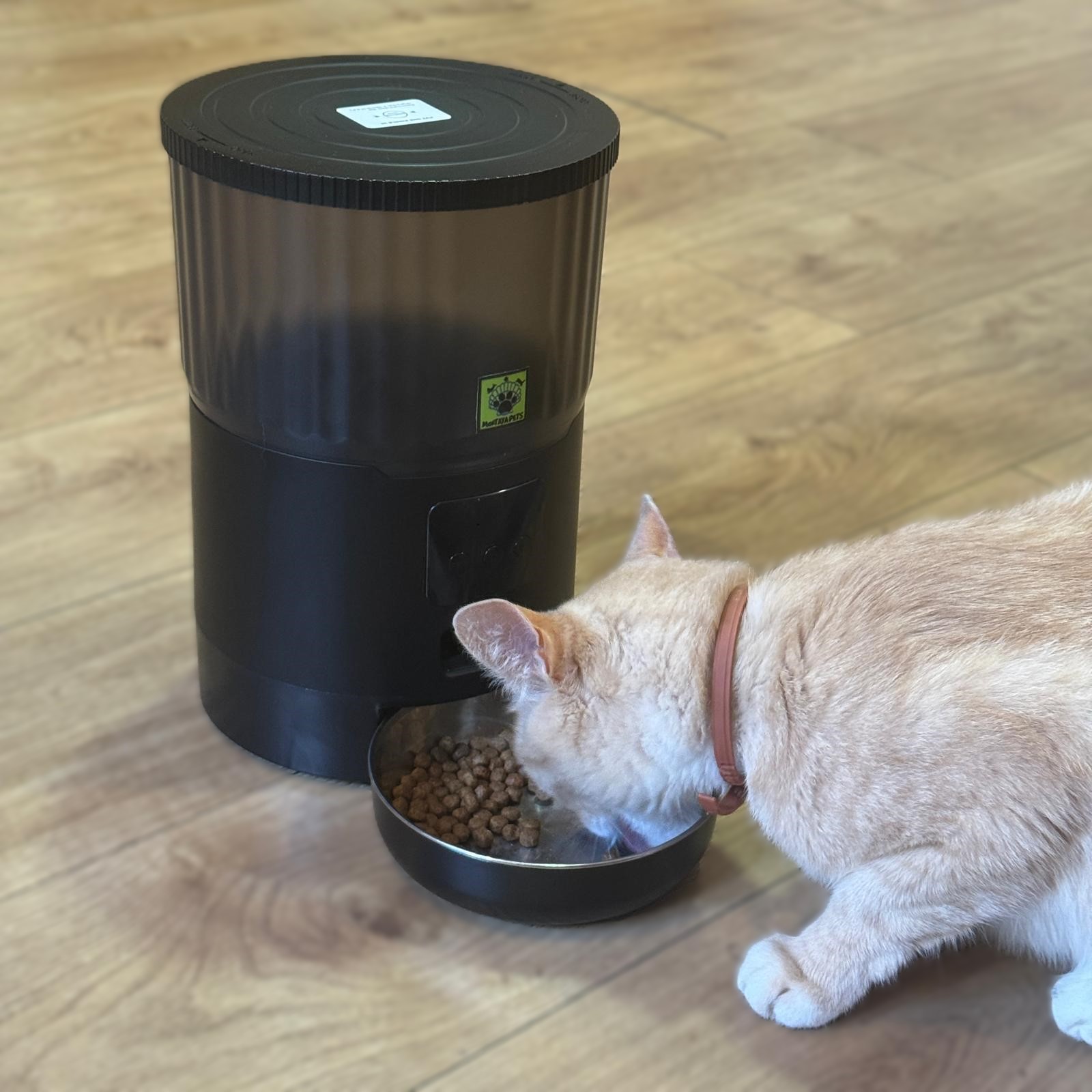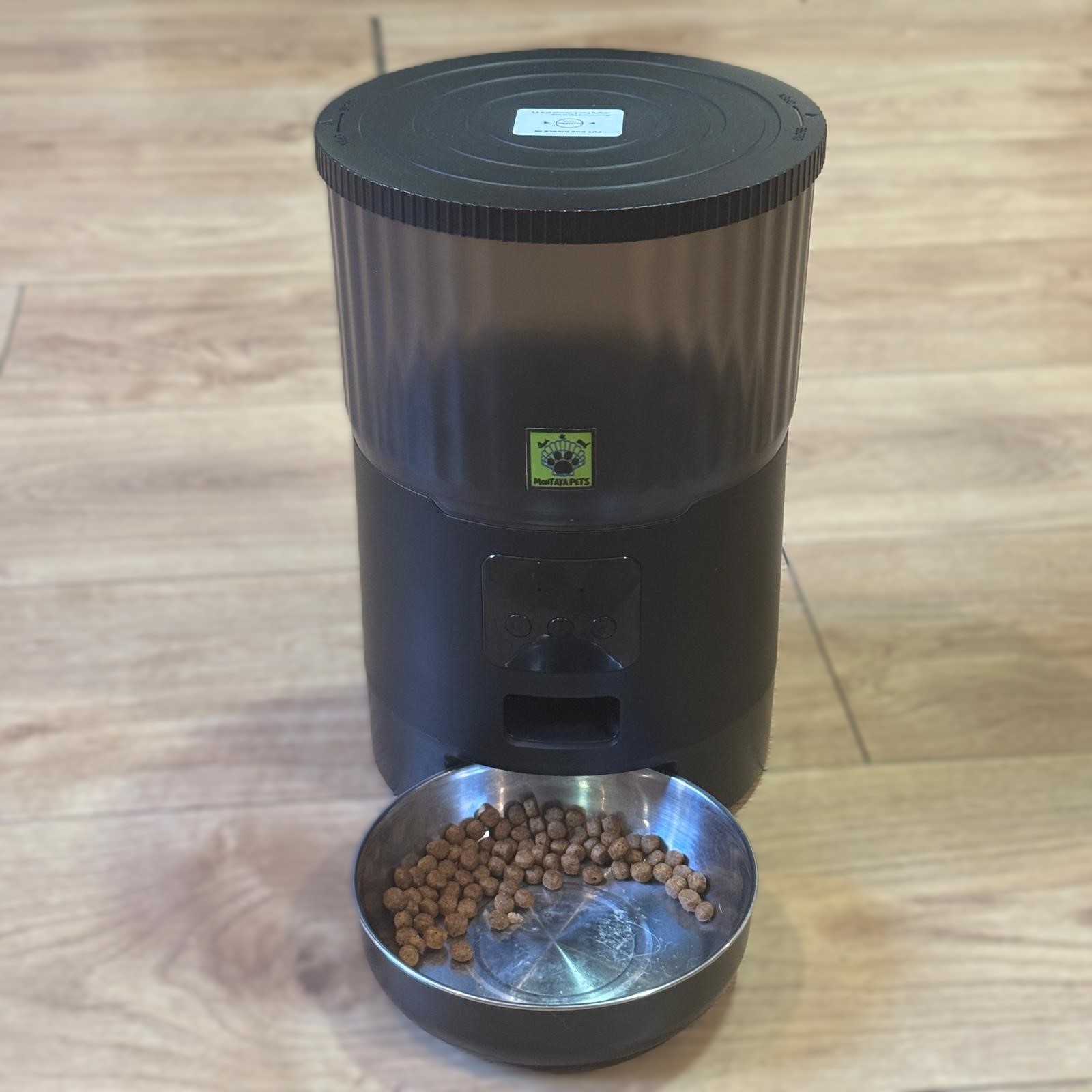 Alimentador inteligente para mascotas, sincronización por WiFi válido para frecuencia 2.4GHZ, interfaz USB. Bandeja de alimentos de acero inoxidable. Fuente de alimentación dual (3 pilas no incluidas o cable de alimentación). Programación de 6 comidas al día. Memoria de parámetros. Adecuado para granos con un tamaño de 5 mm a 10 mm. Capacidad 1,5 kg.
