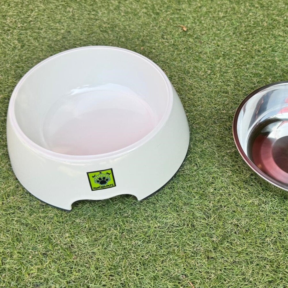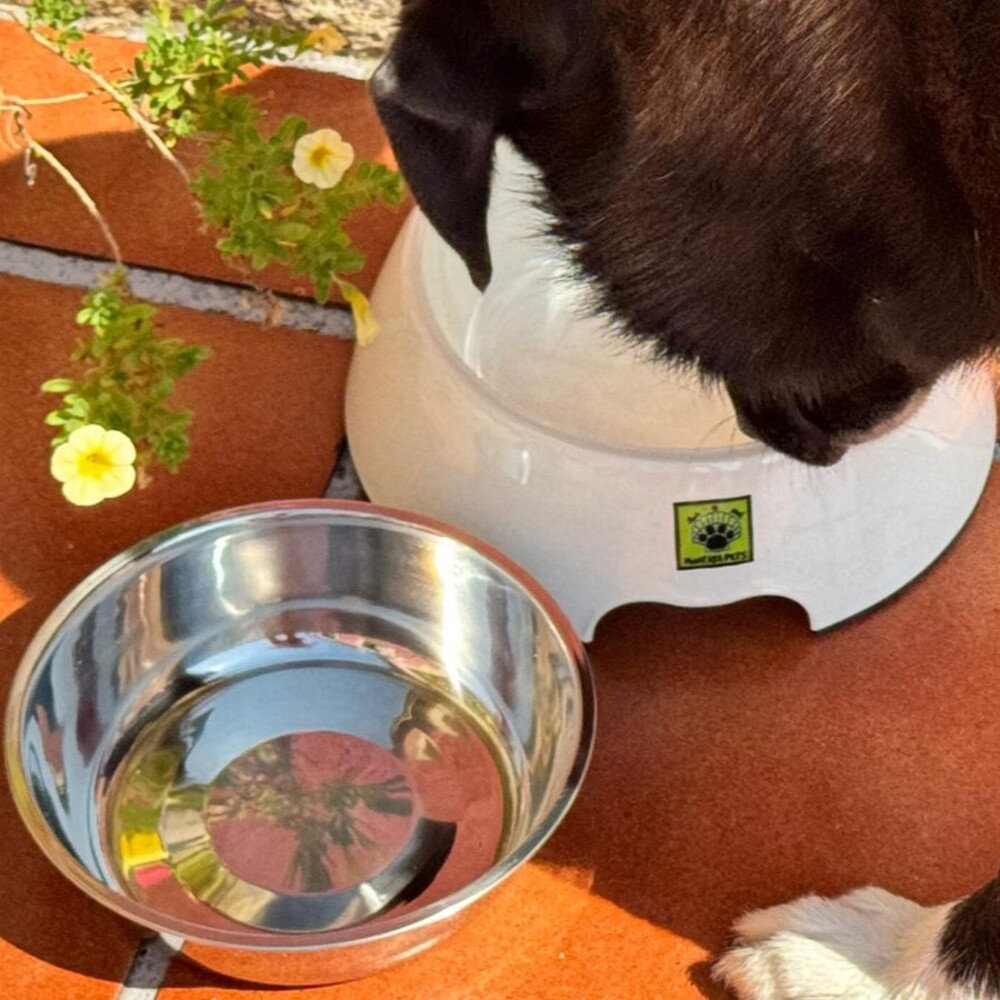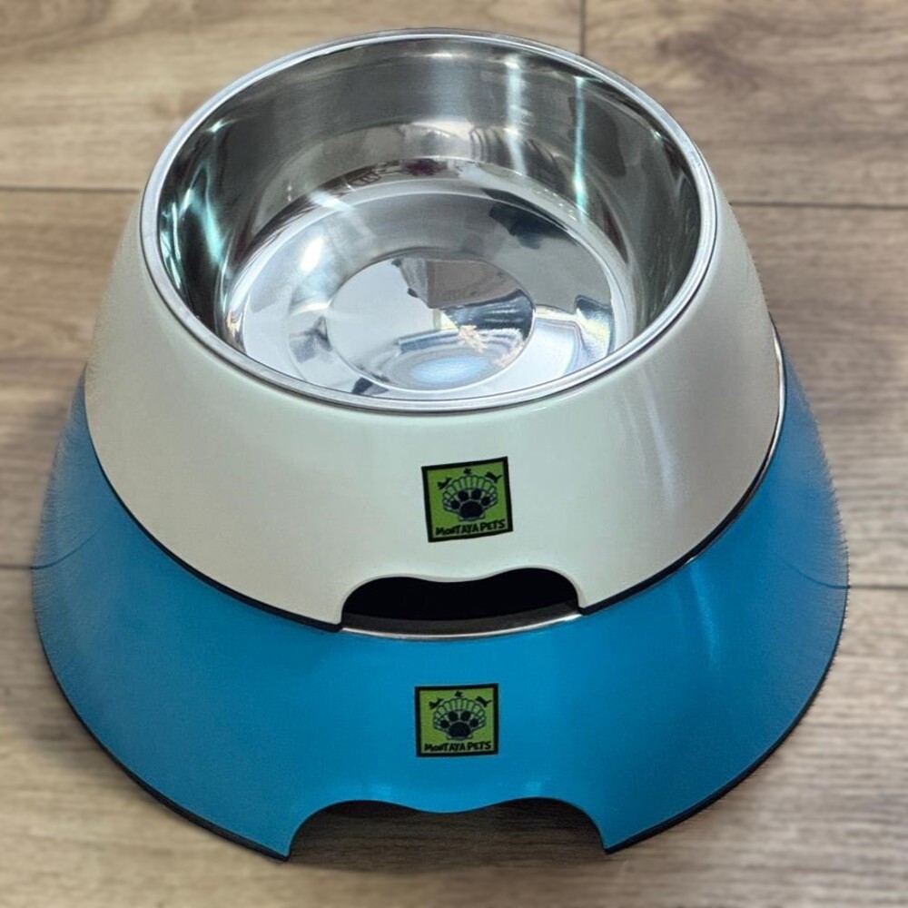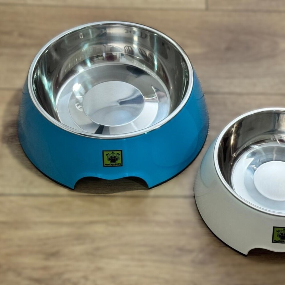 Comedero de melamina con cuenco interior desmontable en acero inoxidable. Suelo antideslizante.