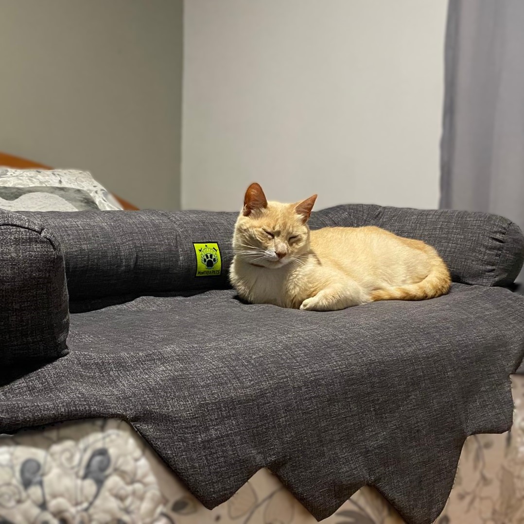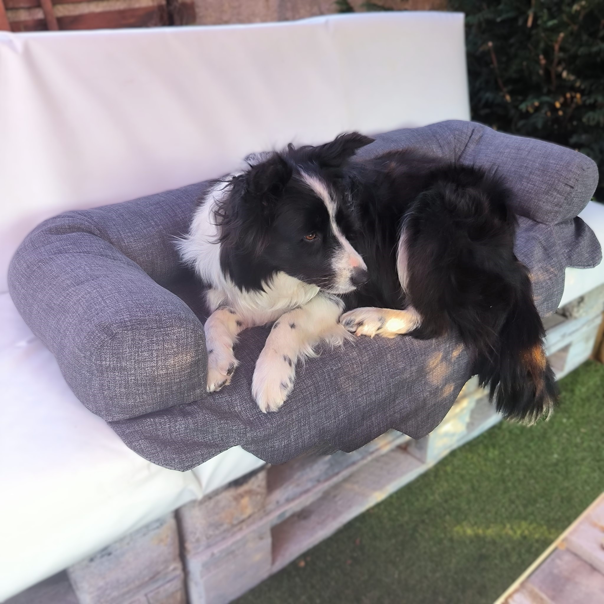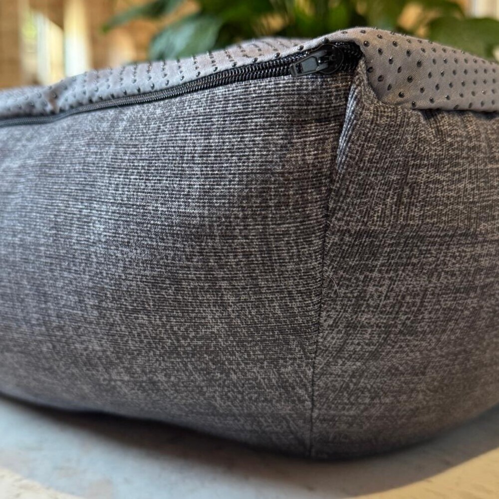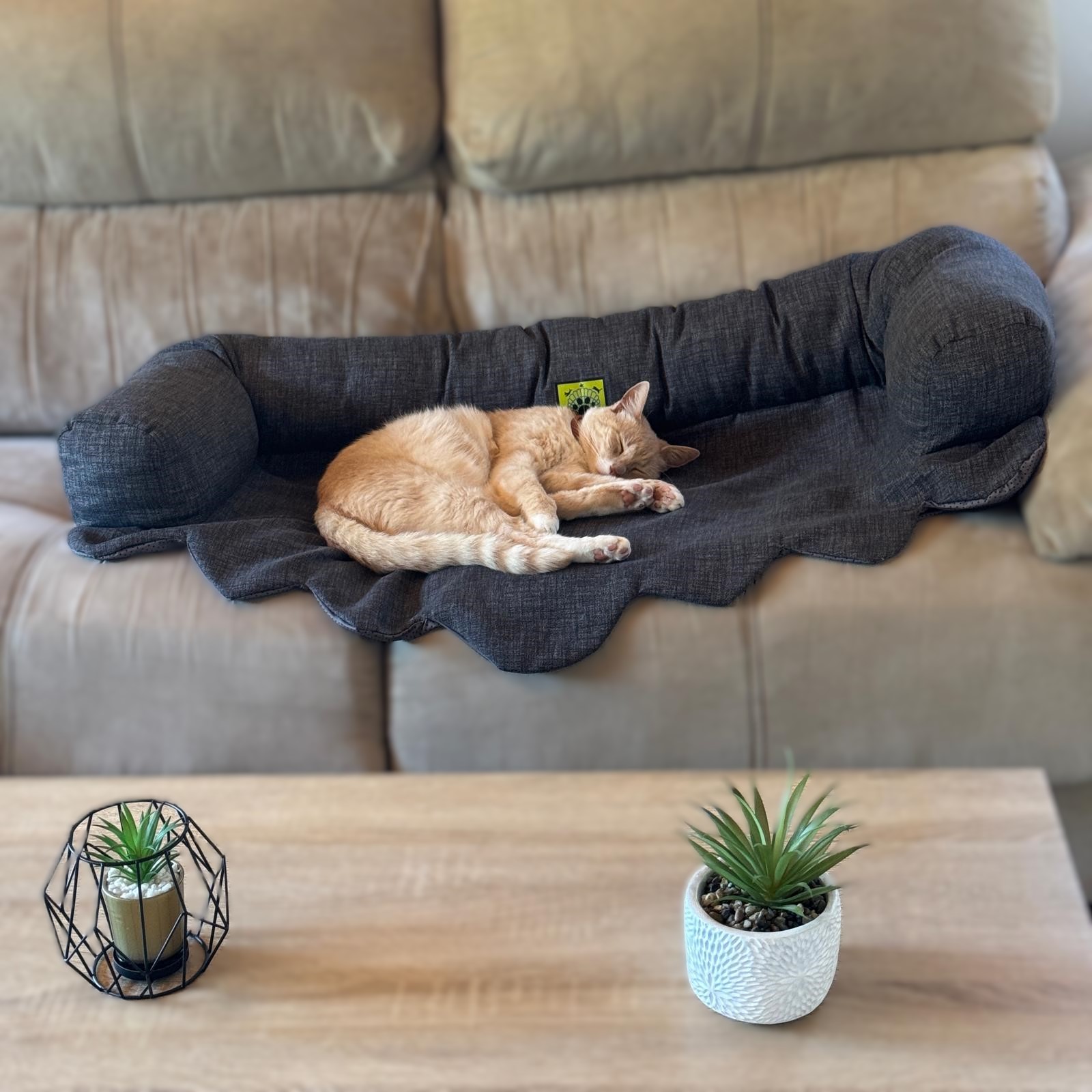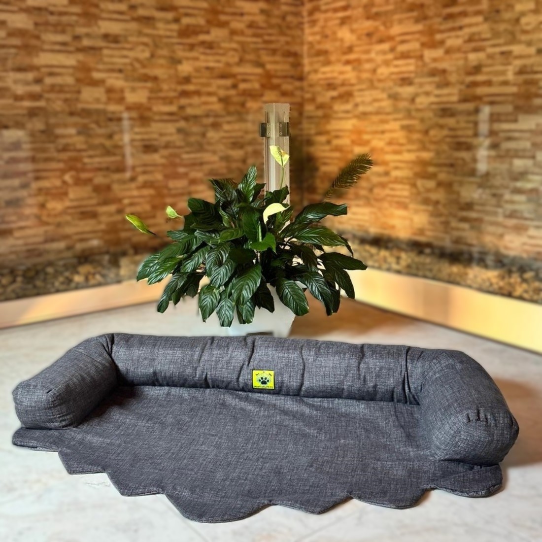 Manta tejido loneta en forma de sofá, con antideslizante en la base. Medidas: 110 x 70 cm Color gris oscuro.